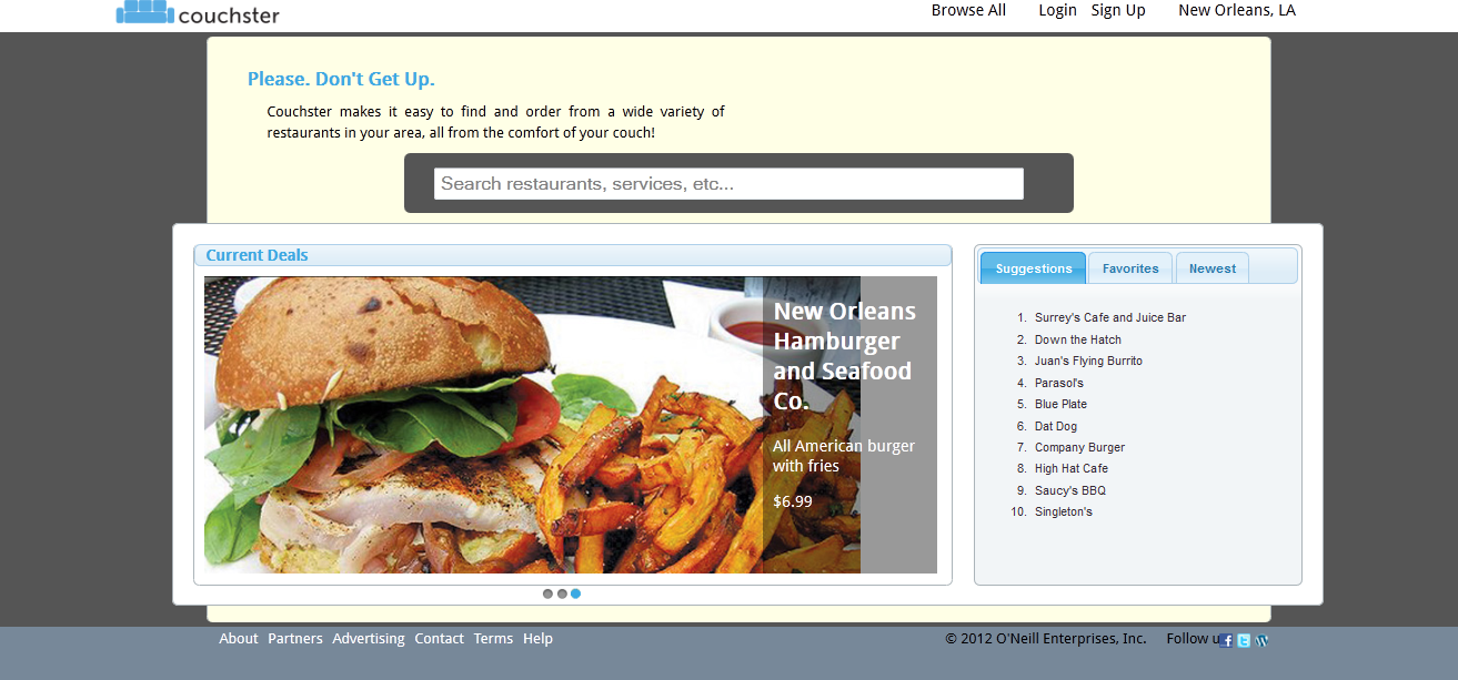 When asked about funding, O’Neill said, “I’m a strong believer in not seeking funding until you’ve proven your idea, so when I moved back to New Orleans in February 2011 wanting to start a company, but lacking the money, I got a job instead. I worked 8-5 for a little over a year, saving every penny I could while refining my idea, and ultimately quit to start working full time on Couchster in June 2012.”
